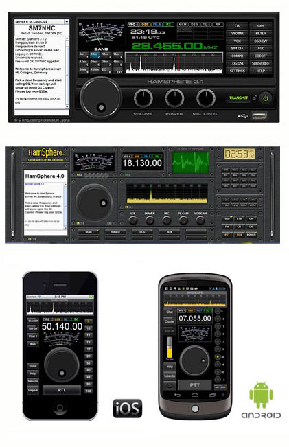 HamSphere 4.0 also comes as an Android version as seen on the left based on the same modular plug-in design. It is using the same network, but with a different set of antennas and functionality.