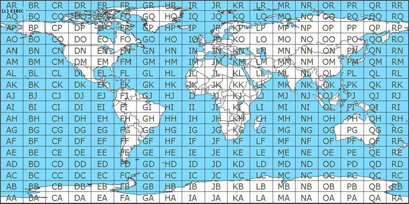 Ham Radio operators often use Grid locators to indicate their locations. The Maidenhead Locator System (a.k.a. QTH Locator and IARU Locator) is a geographic co-ordinate system used by amateur radio operators to succinctly describe their locations. Its purpose is to be concise, accurate and robust in the face of interference and adverse transmission conditions. The Maidenhead Locator System can describe locations anywhere in the world. Grid "squares" are distorted on any non-equirectangular cartographic projection. Here to the right you can see the grid squares of the entire world.