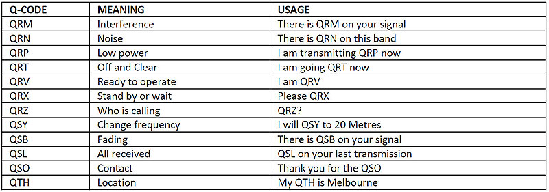 The Q-code is an international set of abbreviations that was created at the beginning of the last century to simplify radiotelegraph communication. Each code is composed by three letters always starting with Q. Each code can be a question if followed by a question mark or an answer (or statement) if not. To avoid confusion, no station call-sign begins with Q. Even if initially designed for telegraphy, it's also used in voice communications.