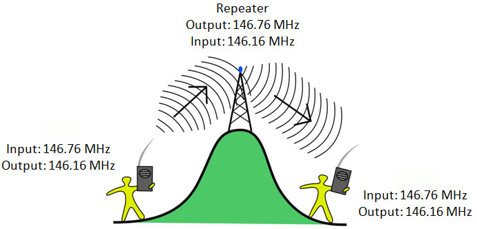 An amateur radio repeater is an electronic device that receives a weak or low-level amateur radio signal and retransmits it at a higher level or higher power, so that the signal can cover longer distances without degradation. Many repeaters are located on hilltops or on tall buildings as the higher location increases their coverage area, sometimes referred to as the radio horizon, or "footprint". The common thing with these repeaters is that they have an offset between receive and transmit frequencies. For FM repeaters on the 10m HF band the offset is 100 kHz whereas on 2-meter (145 MHz) the offset is usually 600kHz.